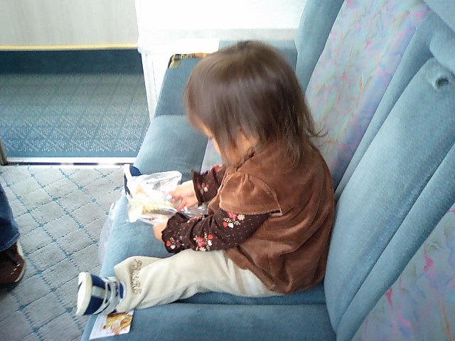池袋駅で買ったスイートポテトを娘が見つけて荒らしている、の図。