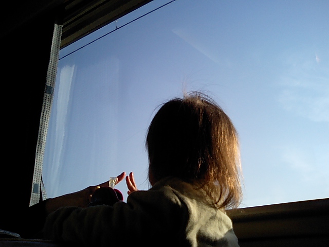 乗務員の交代風景をウォッチしている娘。