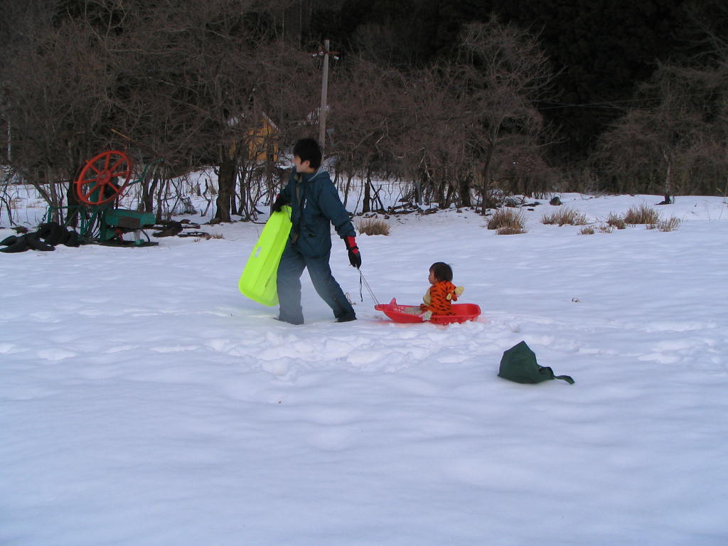 ファミリースキー場で、そり遊びしていました。