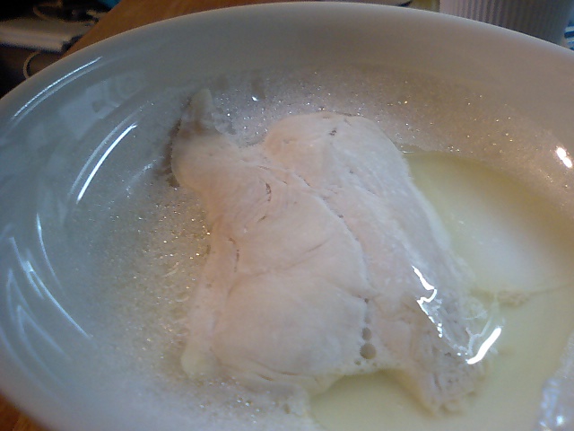 鶏肉を電子レンジにかけたら、皿にかけたラップがぴったり凹んだ状態になって出てきた。