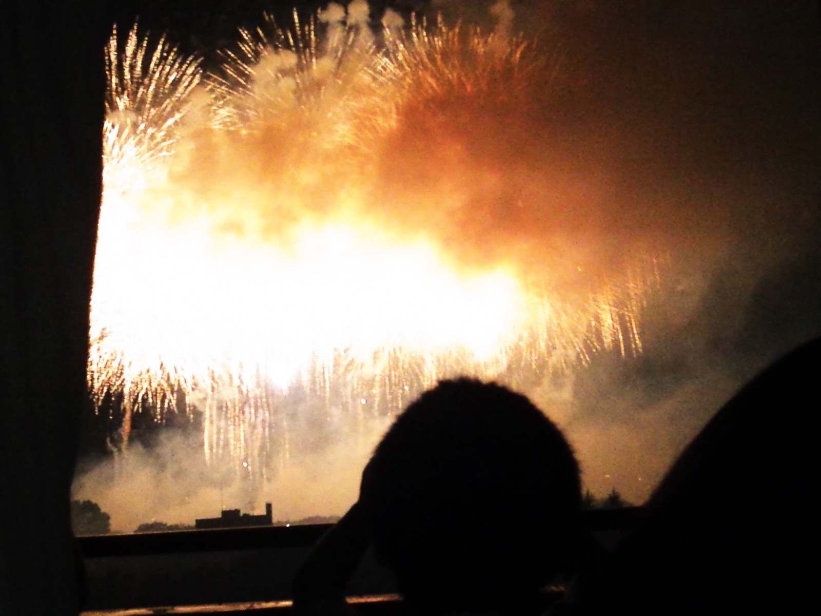 僕が花火の写真を撮っていたら、娘がマネをしたがって、僕から奪い取ったカメラを片手に終始ファインダーを覗いていました。