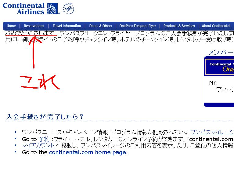 コンチネンタル航空のマイル会員に入る事にした。