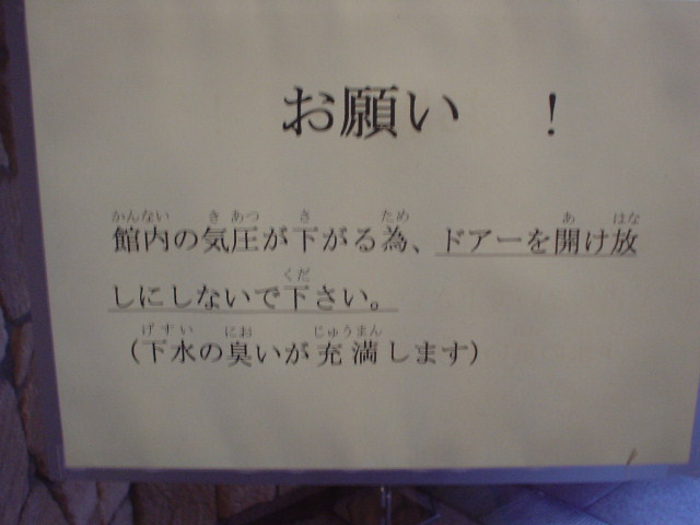 エントランスは開放厳禁。下水の臭いが館内に入ってしまうとの事。