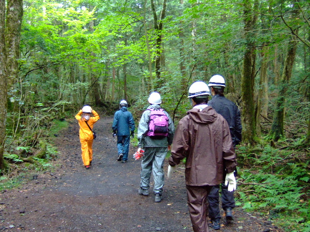 青木ヶ原樹海の中を風穴目指して歩きます。