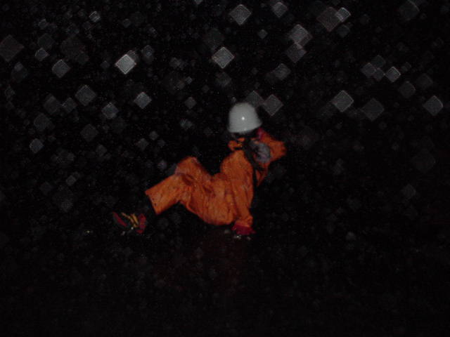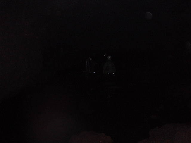 下の写真は一緒に行ったメンバーのヘッドランプの光(20mくらい離れて撮影。3個ヘッドランプが点いています)。