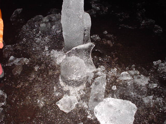 50mくらい進むと一面氷の床になります。所々に氷柱ができています。