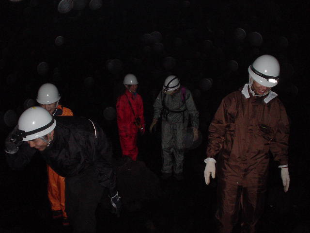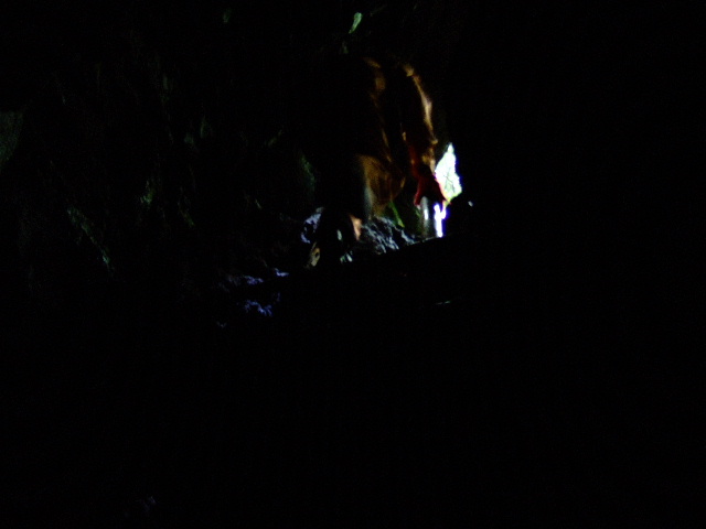 風穴の中で休憩中。本当に真っ暗。いままで体験した事のない暗闇を体験できます。