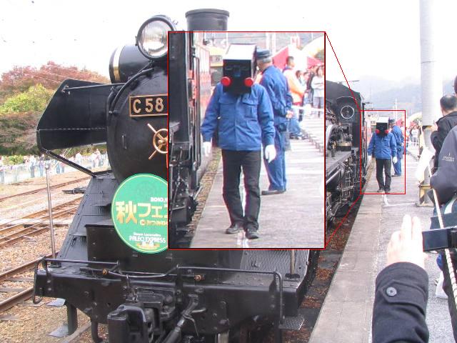 上の写真の右に写っている、黒い箱をかぶったスタッフ、秩父鉄道の貨車、「ヲキフ100」のコスプレと思われます。貨物がスポットライトを浴びているなんてもう最高。