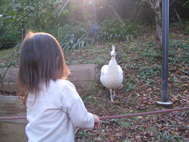 11/3 横浜市の野毛山動物園。娘とクジャク。ここもムーミン屋敷といっしょで無料のナイススポット。